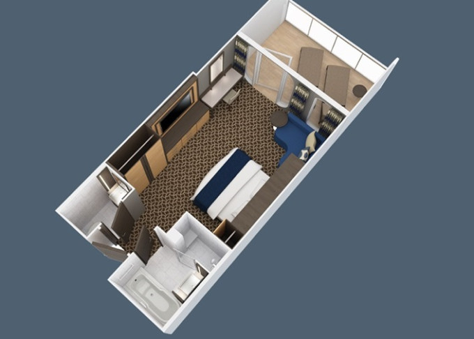 J3 - Junior Suite s balkónom 25 m² + balkón 7,5 m². Max 4-5 osôb. Výhody Royal Suite Sea Class. | 5 614 € 2 807 € za osobu | ||