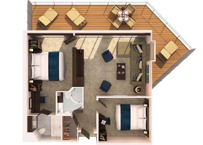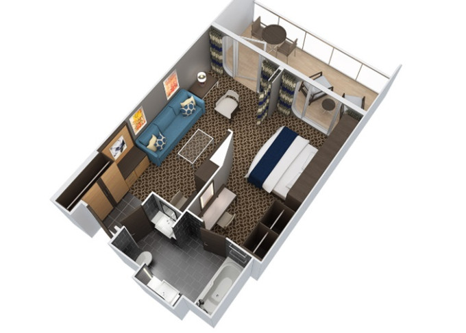 J3 - Junior Suite s balkónom 25 m² + balkón 7,5 m². Max 4-5 osôb. Výhody Royal Suite Sea Class. | 5 406 € 5 406 € za osobu | ||