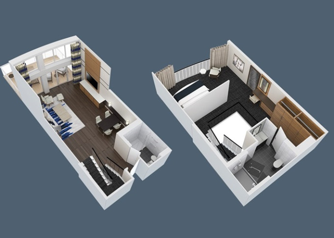 SL - Sky Loft Suite s balkónom 62 m² + balkón 17 m². 2-podlažný apartmán. Max 4 osoby. Výhody Royal Suite Sky Class. | 10 506 € 10 506 € za osobu | ||
