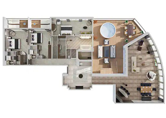 H2 - The Haven Deluxe Owner's Suite 136 m² / balkón 45 m². 18. paluba vpredu. Max 6 osôb. Výhody The Haven. | 15 070 € 7 535 € za osobu | ||