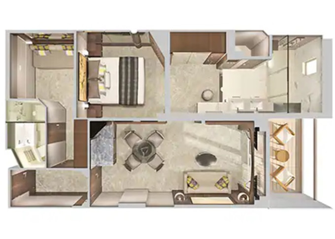 M1 - Club Suite Aft-facing od 25 m² / balkón 5-8 m². 11. paluba - vzadu. Max 4 osoby. Výhody Club. | 6 008 € 3 004 € za osobu | ||