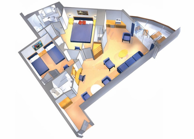 OT - Owner´s Suite s balkónom / 2 spálne 54 m² + balkón 14 m². Max 8 osôb. Výhody Suite. | 6 956 € 3 478 € za osobu | ||