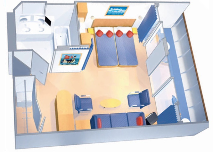 1K - Veľká vonkajšia kajuta Ultra Spacious 24,5 m². Neotvárateľné okno. Oddelená časť s poschodovou posteľou. Max. 5-6 osôb. | 2 111 € 2 111 € za osobu | ||