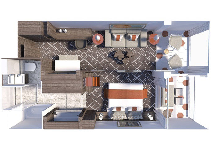 CS - Celebrity Suite 43 m² + balkón 5 m². 11,12. paluba. Max 4 osoby. Výhody Suite. | 9 695 € 9 695 € za osobu | ||
