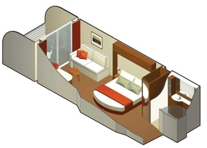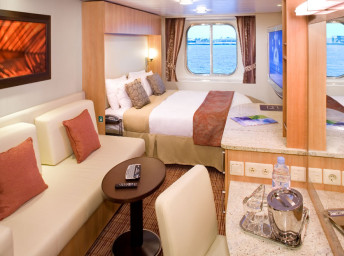 - Kajuty sú umiestnené v blízkosti lodného Spa. K ich vybaveniu patrí posilnený systém vzdušnej filtrácie, posteľ Queen-Size (v kategóriách Edge King-Size), veľké zasúvacie sklenené dvere, exkluzívne posteľné prádlo eXhale®, veľkorysé skladovacie priestory.