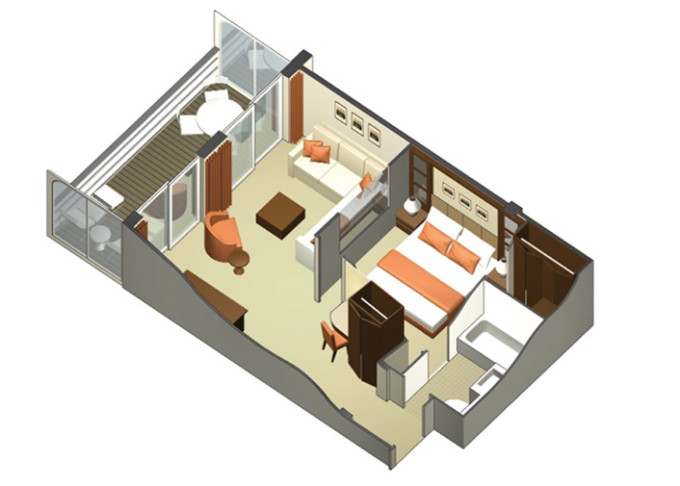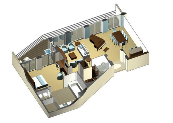 CS - Celebrity Suite 37 m² + balkón 10 m². 9,11. paluba. Max 4 osoby. Výhody Suite. | 18 984 € 6 328 € za osobu | ||