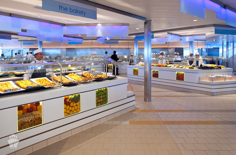 - Oceanview Café – raňajky, obedy a večere s rôznymi stanicami a vnútorným a vonkajším sedením