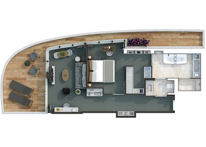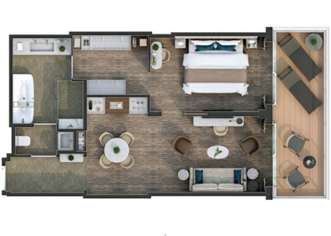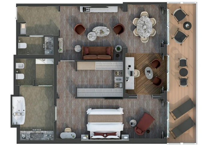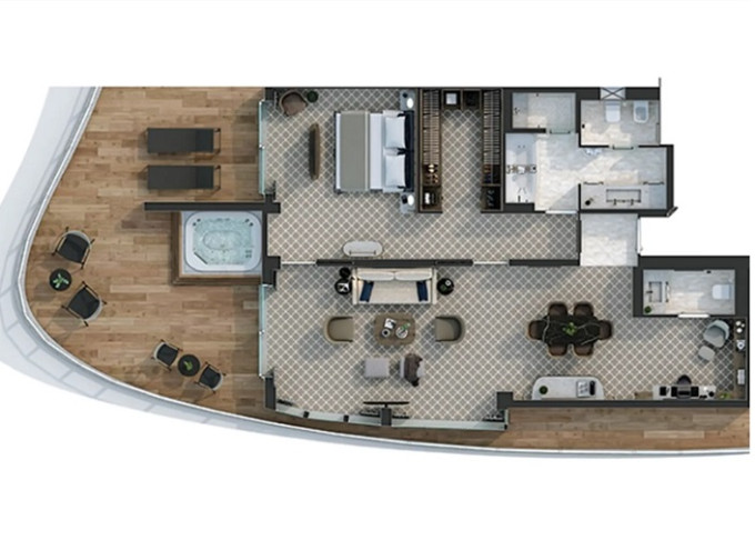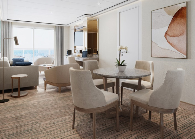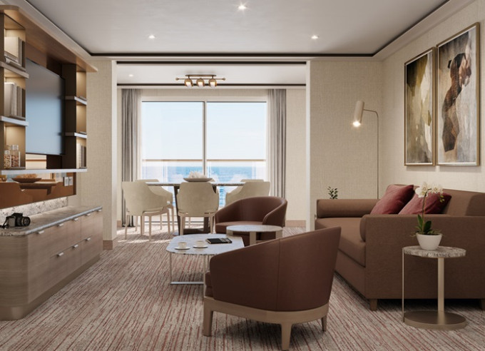 O2 - Owner's 2 Suite 131 m² (vrátane balkóna 16 m²). 2 spálne, oddelená obývacia a jedálenská časť, kúpeľňa s vírivkou. Owners Suite O2 spojená s Premium Veranda Suite. 8. paluba - stred. Max 5 osôb. | 50 200 € 50 200 € za osobu |