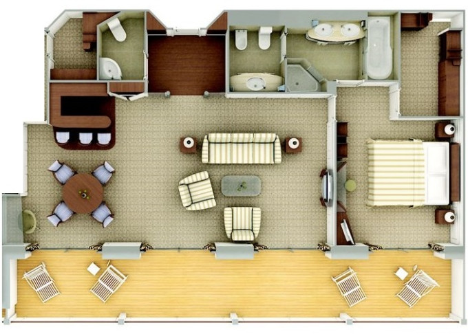 SL - Silver Suite 61-65 m² (vrátane verandy). 7. paluba. Max 3 osoby. | 30 000 € 10 000 € za osobu | ||