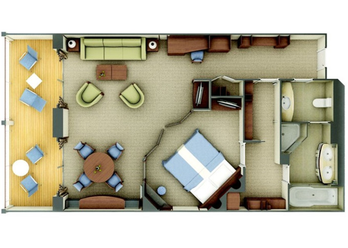 O2 - Owner's Suite 2 117 m² (vrátane balkóna 20 m²). Owners Suite O1 spojená s Vista Suite. 7. paluba stred. Max 5 osôb. | 42 600 € 21 300 € za osobu |
