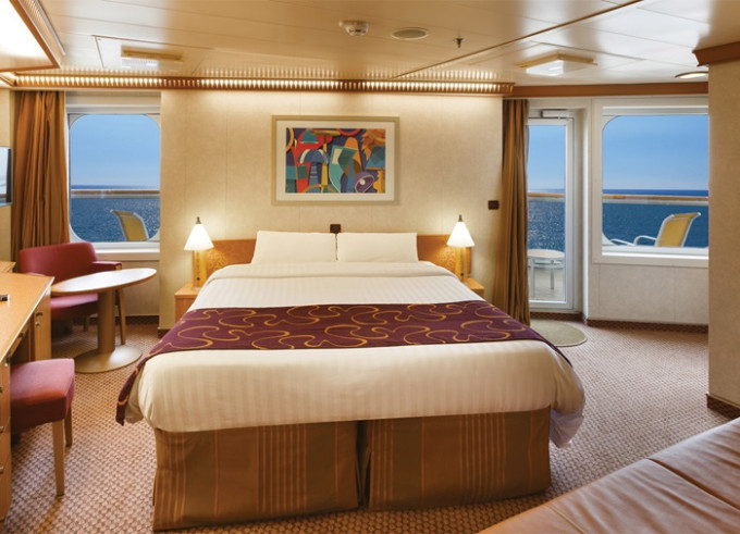 - Ubytovanie v kajute vybranej kategórie. Základné vybavenie: kúpeľňa s WC a sprchovacím kútom, 2 lôžka spojiteľné do manželskej postele, skrine, nočné stolíky, toaletný stolík a stolička, nastaviteľná klimatizácia, interaktívna satelitná TV s plochou obrazovkou, trezor, sušič na vlasy, uteráky a posteľné prádlo, Wi-Fi pripojenie (za poplatok), 24/7 kajutová služba (za poplatok).