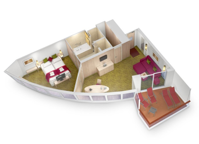 SD - Junior Suite PREMIUM od 34 m² / balkón 10 m². Max 4 osoby. Cenový model Premium + výhody Junior Suite. | 3 560 € 1 780 € za osobu | ||