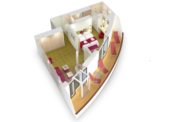 BP - Kajuta s balkónom Panorama PREMIUM 21,5 m² / balkón 4,5 m². Max 3 osoby. Cenový model Premium + výhody Suite. | 2 540 € 1 270 € za osobu | ||