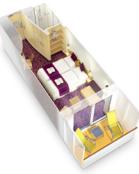 MB - Vonkajšia kajuta PREMIUM od 14 m². Neotvárateľné okno. Max 4 osoby. Cenový model Premium. | 2 400 € 1 200 € za osobu | ||