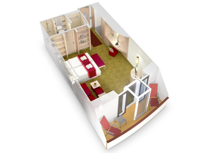 BA - Kajuta s balkónom PREMIUM od 17,5 m² / balkón od 3 m². Max 4 osoby. Cenový model Premium. | 3 120 € 1 560 € za osobu | ||