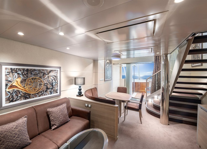 YJD - Yacht Club Duplex Suite s vírivkou 59 m² + balkón 23 m². Vírivka. 2 podlažia, 2 šatníky, 2 kúpeľne (1 s vaňou). 9. až 12. paluba. Cenový model MSC Yacht Club. | 25 612 € 6 403 € za osobu | ||