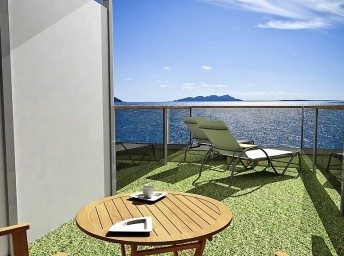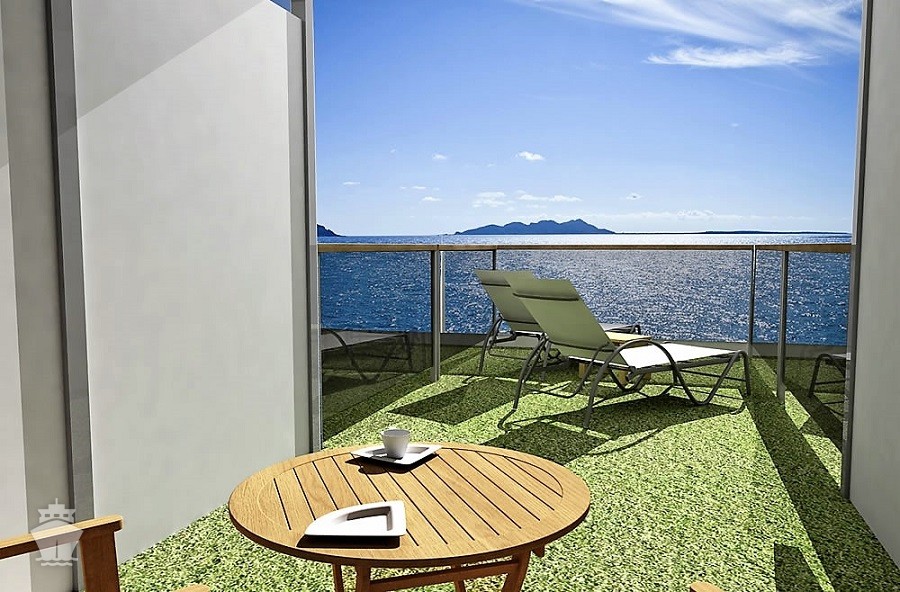 SLT - Premium Suite Aurea s veľkou terasou 28 m² + balkón 38 m². 9. paluba. Cenový model Aurea. | 1 448 € 724 € za osobu | ||