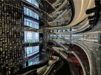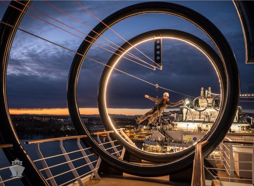 "360° Waterfront boardwalk" – promenáda okolo celej lode, ktorej súčasťou je prechádzka cez priehľadnú podlahu pre ešte väčší zážitok z plavby.