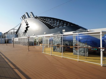 - Športové aktivity na otvorených palubách (jogging, basketbal, futbal, tenis), bazény a ležadlá