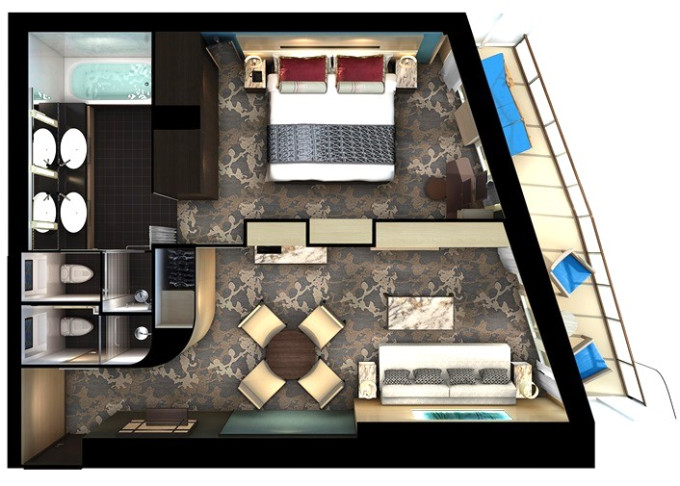HB - The Haven Aft-facing Penthouse Suite 57-62 m² / balkón 17-23 m². 9,12,15. paluba vzadu. Max 4 osoby. Výhody The Haven. | 18 888 € 9 444 € za osobu | ||