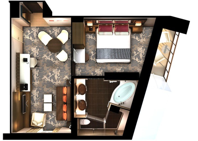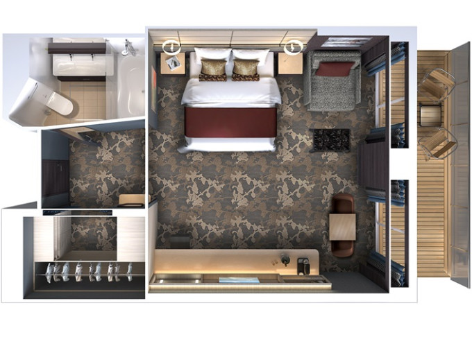 HF - The Haven Courtyard Penthouse 30 m² / balkón 5 m². 18. paluba vpredu. Max 3 osoby. Výhody The Haven. | 14 378 € 7 189 € za osobu | ||