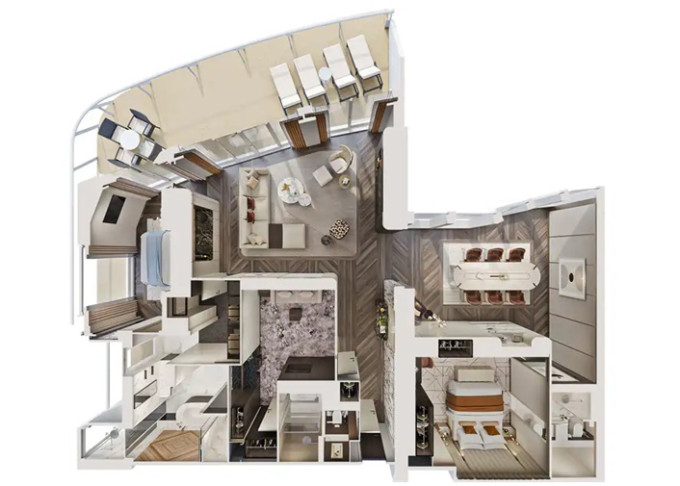 H2 - The Haven Deluxe Owner's Suite 197 m² / balkón 45 m². 18. paluba vpredu. Max 6 osôb. Výhody The Haven. | 32 304 € 16 152 € za osobu |
