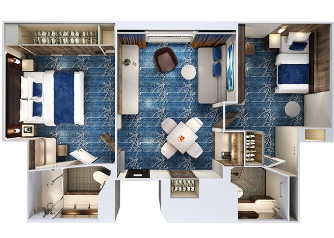 H5 - The Haven Family Villa - 2 spálne 5 m² / balkón 11 m². 17. paluba - vpredu. Max 6 osôb. Výhody The Haven. | 22 412 € 11 206 € za osobu | ||