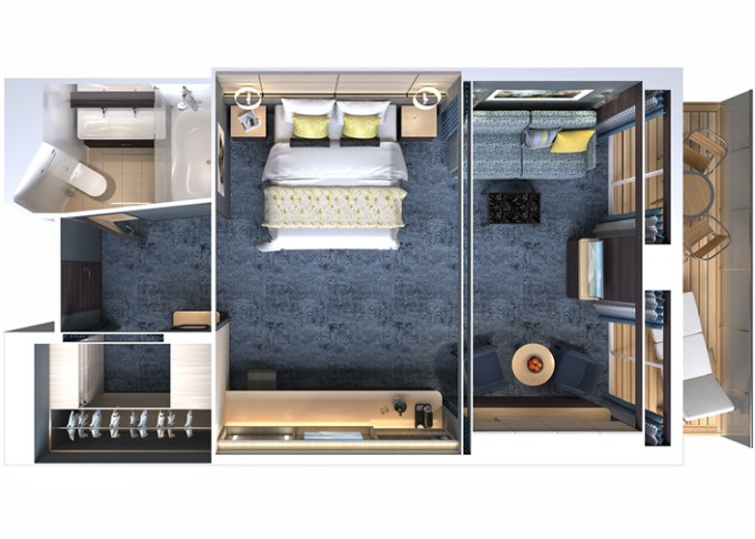 H6 - The Haven Family Villa - 2 spálne 50 m² / balkón 4 m². 18. paluba vpredu. Max 6 osôb. Výhody The Haven. | 20 838 € 10 419 € za osobu | ||
