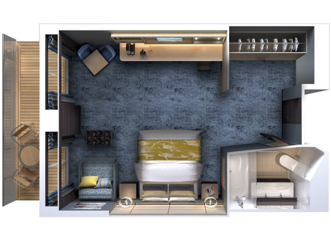 HJ - The Haven Suite s balkónom 35 m² / balkón 5 m². 14. paluba - stred. Max 4 osoby. Výhody The Haven. | 12 024 € 6 012 € za osobu | ||
