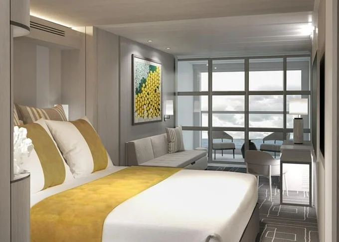 IC - Iconic Suite 176 m² + terasa s vírivkou 64 m². 2 spálne, 2 kúpeľne (1 s vírivkou).12. paluba. Max 6 osôb. Výhody Retreat Suite + Icon Suite extra: Dizajn: Kelly Hoppen. Používanie fitness bicyklov Peloton® v kajute, In-suite Personal Retreat Host's komora, obliečky Celebrity eXhale™ s kašmírovým King matracom, elektronické ovládanie zariadení v miestnosti pomocou dotykovej obrazovky | 50 755 € 50 755 € za osobu |