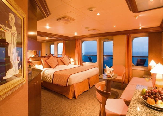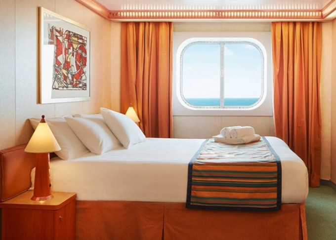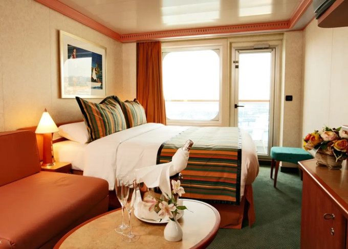 • Ubytovanie v kajute vybranej kategórie. Základné vybavenie: kúpeľňa s WC a sprchovacím kútom, 2 lôžka spojiteľné do manželskej postele, skrine, nočné stolíky, toaletný stolík a stolička, nastaviteľná klimatizácia, interaktívna satelitná TV s plochou obrazovkou, trezor, sušič na vlasy, uteráky a posteľné prádlo, Wi-Fi pripojenie (za poplatok), 24/7 kajutová služba (za poplatok).