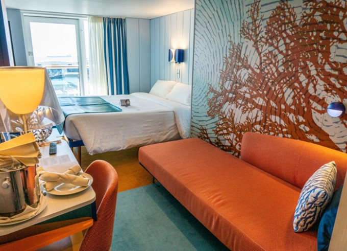 B1 MyCruise - Kajuta s balkónom 19 m² + balkón 4 m². 5. paluba. Max 2-5 osôb. Cenový model MyCruise. | 478 € 239 € za osobu | ||