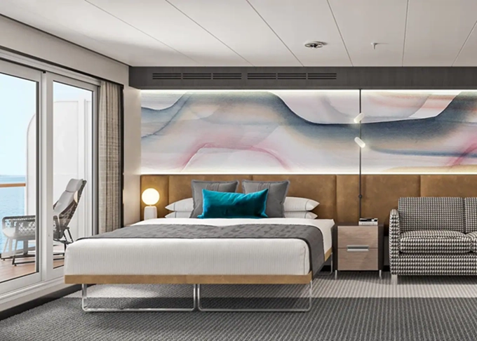 SI - Suite s veľkým balkónom na korme 24 m² / balkón 19 m². 9. paluba vzadu. Max 2 osoby. Výhody Suite 3 592 € 1 796 € za osobu