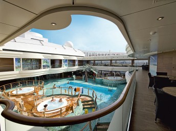- Športové aktivity na otvorených palubách (jogging, basketbal, futbal, tenis), bazény a ležadlá