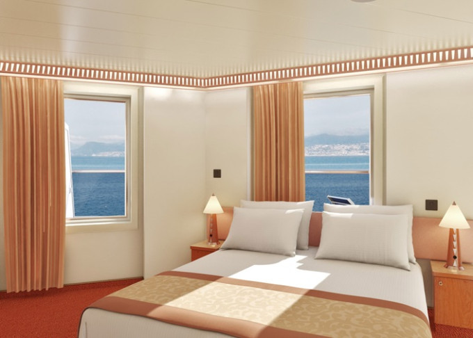 6K - Vonkajšia kajuta Grand Scenic 29 m². Veľké panoramatické neotvárateľné okná. 9. paluba vpredu. | 2 138 € 1 069 € za osobu | ||
