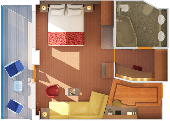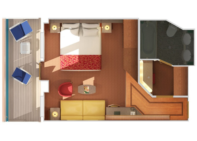 OS - Ocean Suite 26 m² + balkón 6 m². 7. paluba stred, vpredu. Max 4 osoby. Výhody Suite. | 3 008 € 1 504 € za osobu | ||