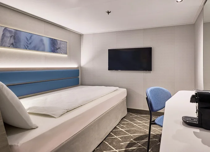 | EZIO - Kajuta Single vnútorná 8 m². 11. paluba. Max 1 osoba. | 1 399 € 1 399 € za osobu | ||