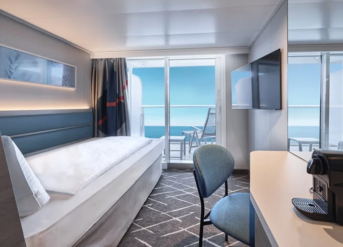 | SSAO - Schöne Aussicht Suite 39 m² + balkón 10-12 m² s ležadlami a hojdacou sieťou. 7-14. paluba. Max 4 osoby. Výhody Suite. | 3 598 € 1 799 € za osobu | ||
